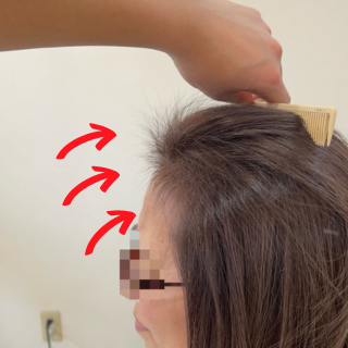 ところが、コロナに罹患した後や、毎年夏場に抜け毛が急激に増えてさらに薄毛が進行したことで「生え際が後退し前髪が割れる」「全体のボリュームが出なくて、つむじが割れる」状態でした。(生え際のM字の部分が部分が伸びなくなってきてツンツンしてるのが画像でわかると思います)