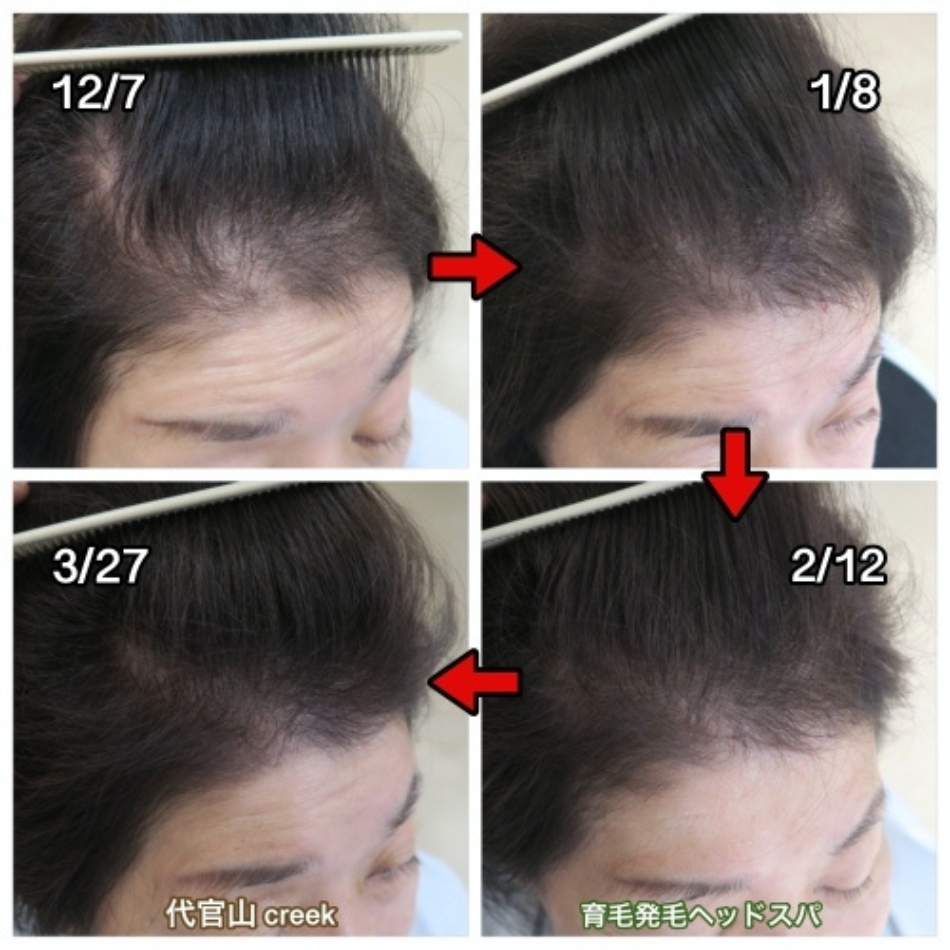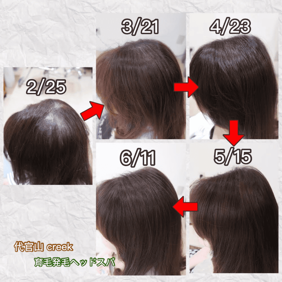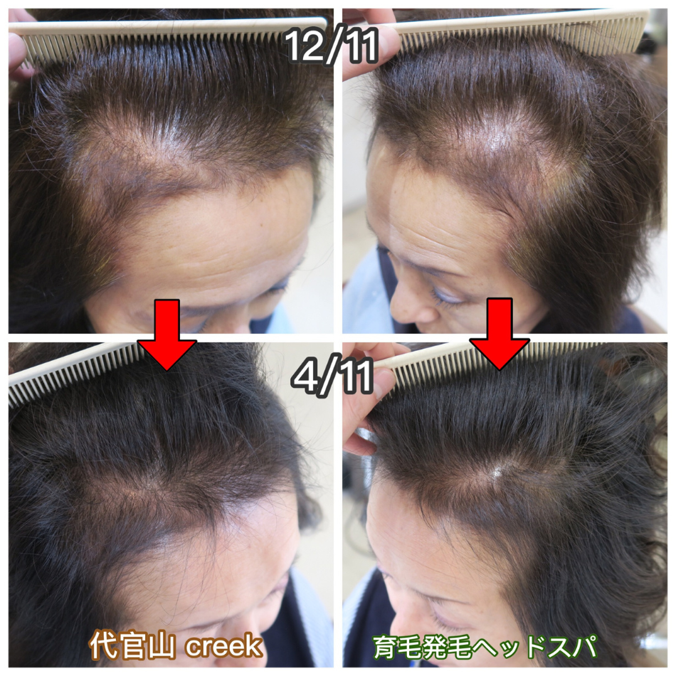 ここまで代官山creekがこだわるのは、他所の育毛サロンよりも結果を出したいではなく、「ダントツに結果を出したい」と日々研究しているからであり、少しでも早くお客様に薄毛のお悩みから解放され「鏡を見るたびに前向きに笑顔になれる日常」を取り戻してほしいという想いがあるからです。