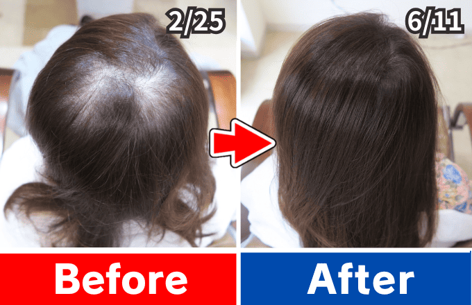 「AGAクリニックよりもたくさんの髪の毛が増えて、心も頭髪も本当に大満足です。」 お風呂上がりの髪が濡れた状態で毎日のように自分でもスマホで撮っていました。みるみる地肌が透けなくなっていって3ヶ月通ったころには「地肌がほとんど透けなくなって...