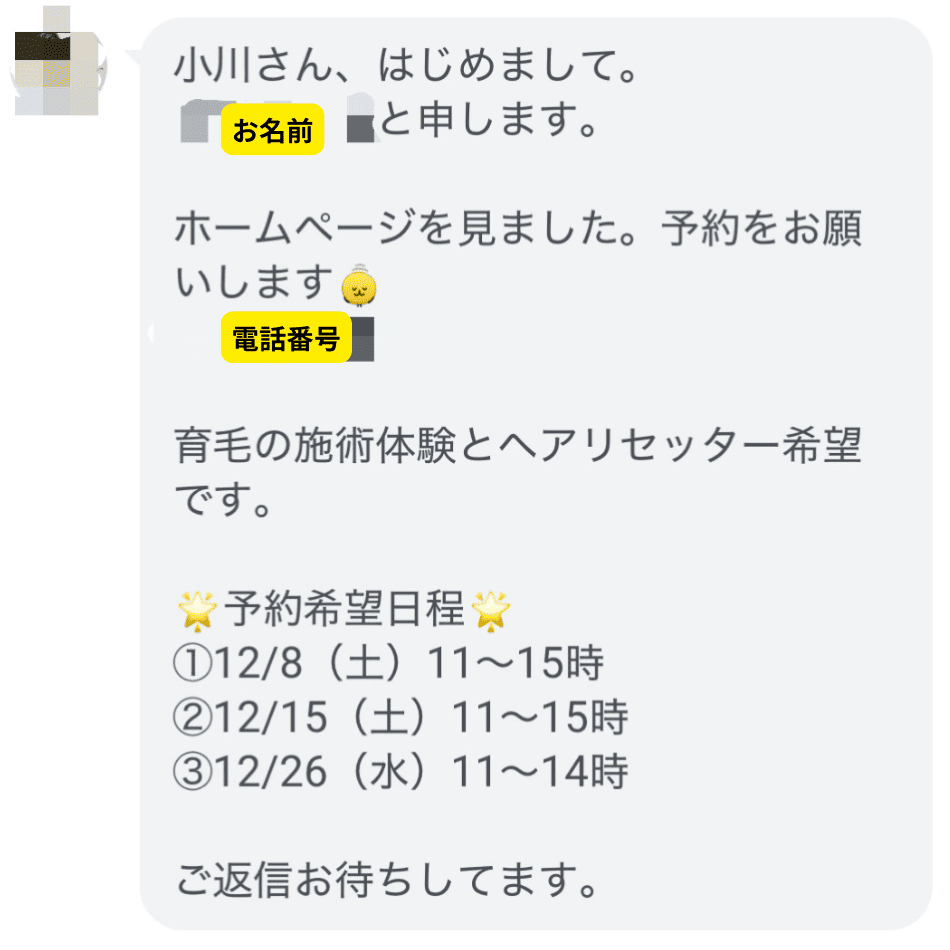LINEからのご予約限定で、お得にご予約可能です。「ホームページを見た」と必ず明記の上、必要な情報と合わせてお問い合わせください。