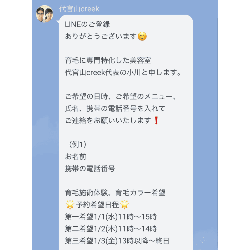 代官山creekを施術体験メニューで問い合わせ、予約する