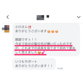 順調ですぅ!! 今まで自分の髪が嫌いだったのですが、これまで成長を見てきて初めて愛おしく思えました。 Fさまは元々関西の方で、千葉に引っ越し前に育毛サロンに数店舗とAGAクリニック...